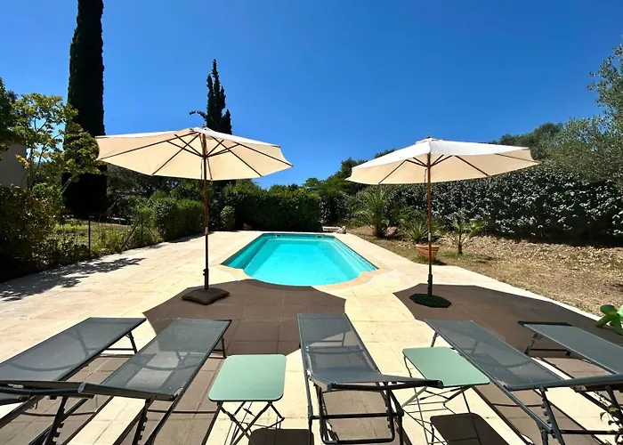 Musée de la Gendarmerie et du Cinémaから6kmの所にある4のベッドルームのあるVilla Serenite グリモーは、庭園の景色を望むルームを提供しています。 プライベ-トなプ-ルへのアクセスを提供するヴィラです。